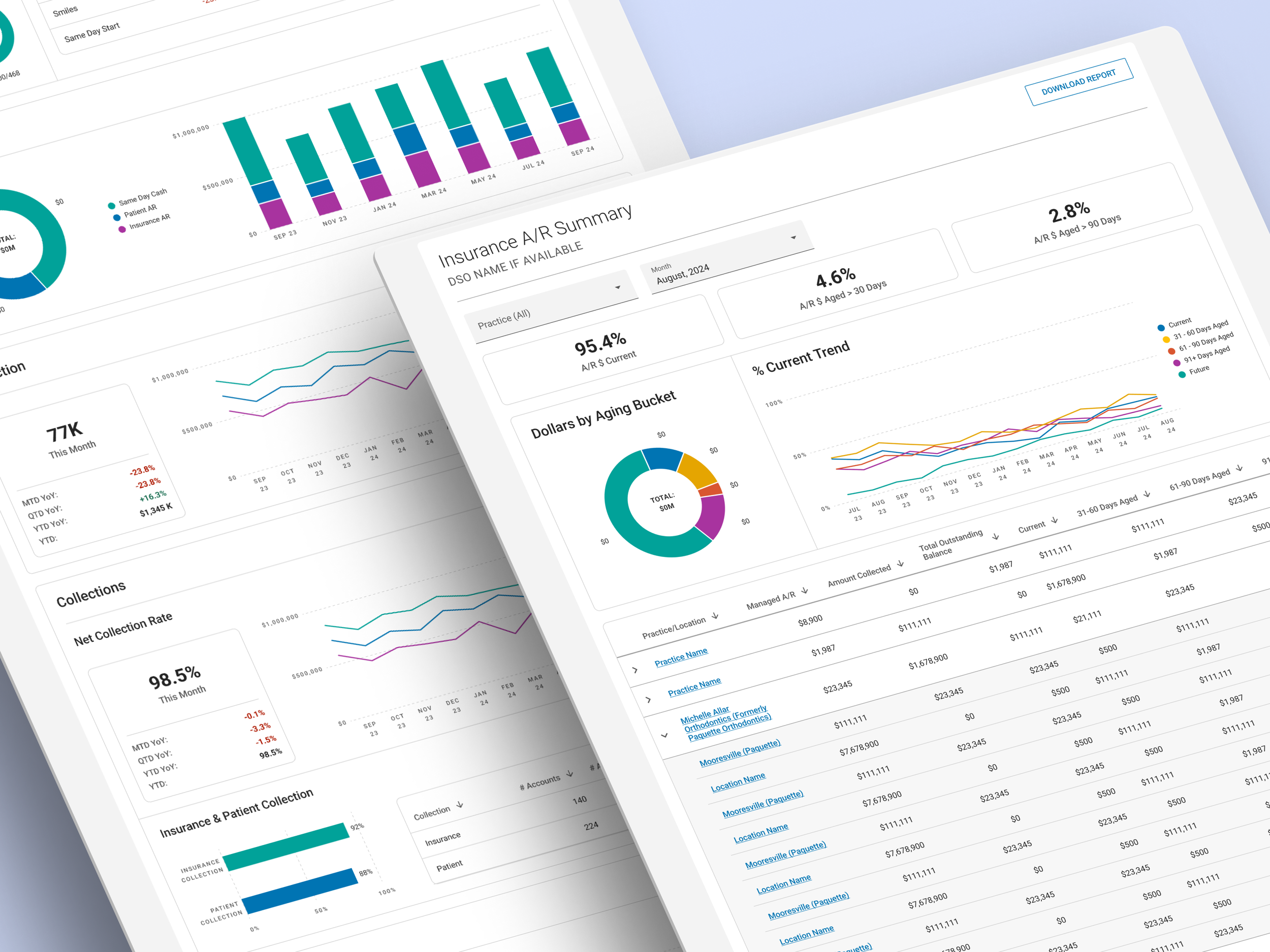 Redesigned Power BI dashboards to visualize KPIs, track insurance A/R, and reveal revenue trends.